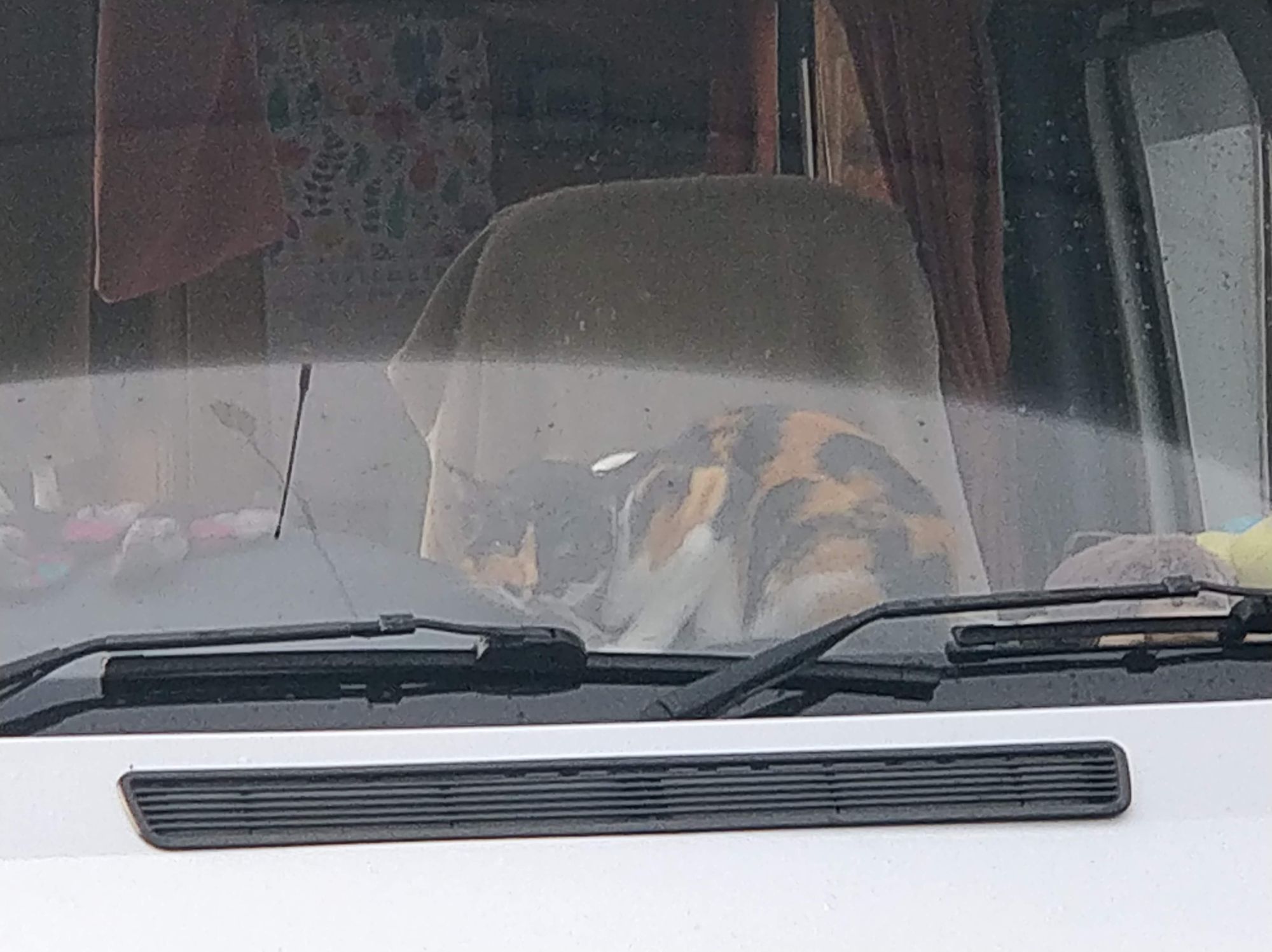 As I left to follow the group back the the field centre, I happened to glance at the campervan that had parked behind me and noticed a lovely tortoise-shell cat sitting in the windscreen. It didn't seem very happy to see me! They were still there next day (it was much happier sitting in the sunshine!) and I learnt that it liked travelling and, when it was quiet, it went for walks on a lead. Don't think mine would approve of such a thing!