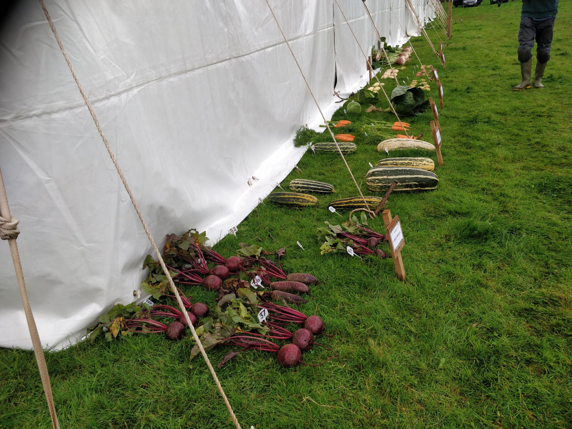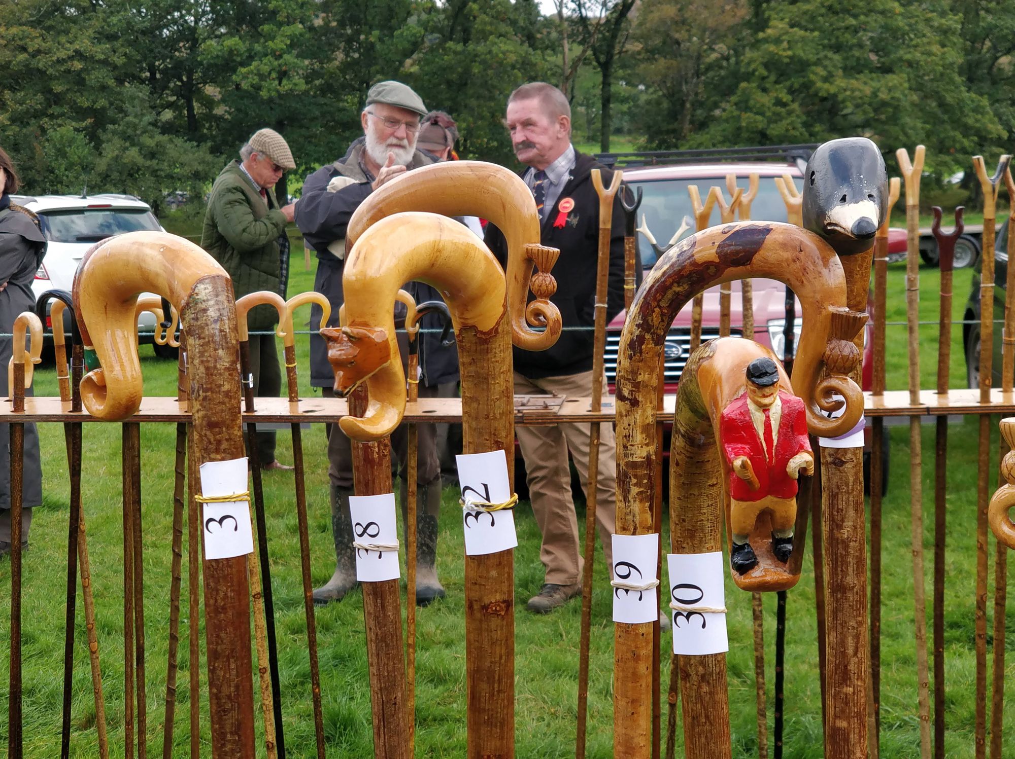 Met a lovely lady called Jane spending her first weekend in her new camper van. We kept each other company at the show. The Herdwick Sheep are the main event and the showing goes on most of the day. I know nothing about sheep but it's fun watching the characters of both sheep and handlers. The decorated walking sticks (shepherds crooks) are always interesting to see. They are beautifully carved and polished. The produce tent was full of good things but I was interested to see the 'industrial produce' and the 'longest nettle' accompanied by the 'biggest dock leaf' on the ground outside the tent! Perhaps some ideas here for the next Galgate Show!