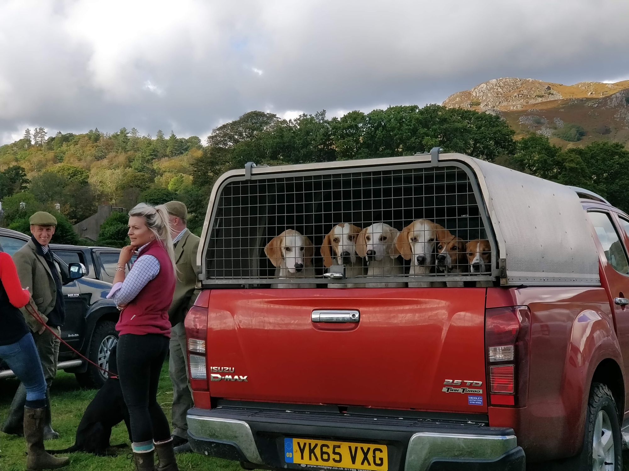 There were plenty of stalls selling good things to eat including wraps filled with Herdy meat - which always seems a bit mean when there are so many sheep around. I had a chat about the use of drones with a chap from Wasdale Mountain Rescue Team then watched the Morris Men who had come all the way from the Cotswolds to take part. Took me back to the days when I was a member of a ladies morris team. Meanwhile the Band played on (Slaidburn for one) and then it was time for the Hound Trails. As far as I know this is sport unique to Lakeland. The dogs race over the fells following a scent trail and are called to the finish by their handlers who tempt them with their favourite titbits. Competition is fierce and the finishes exciting though there does always seems to be one straggler who has gone round in their own time. I just realised I didn't take any pictures of the hounds except the one in the truck below.