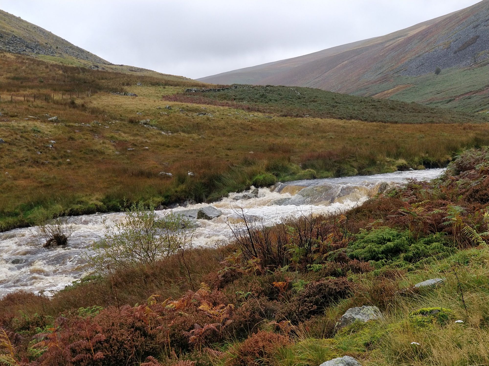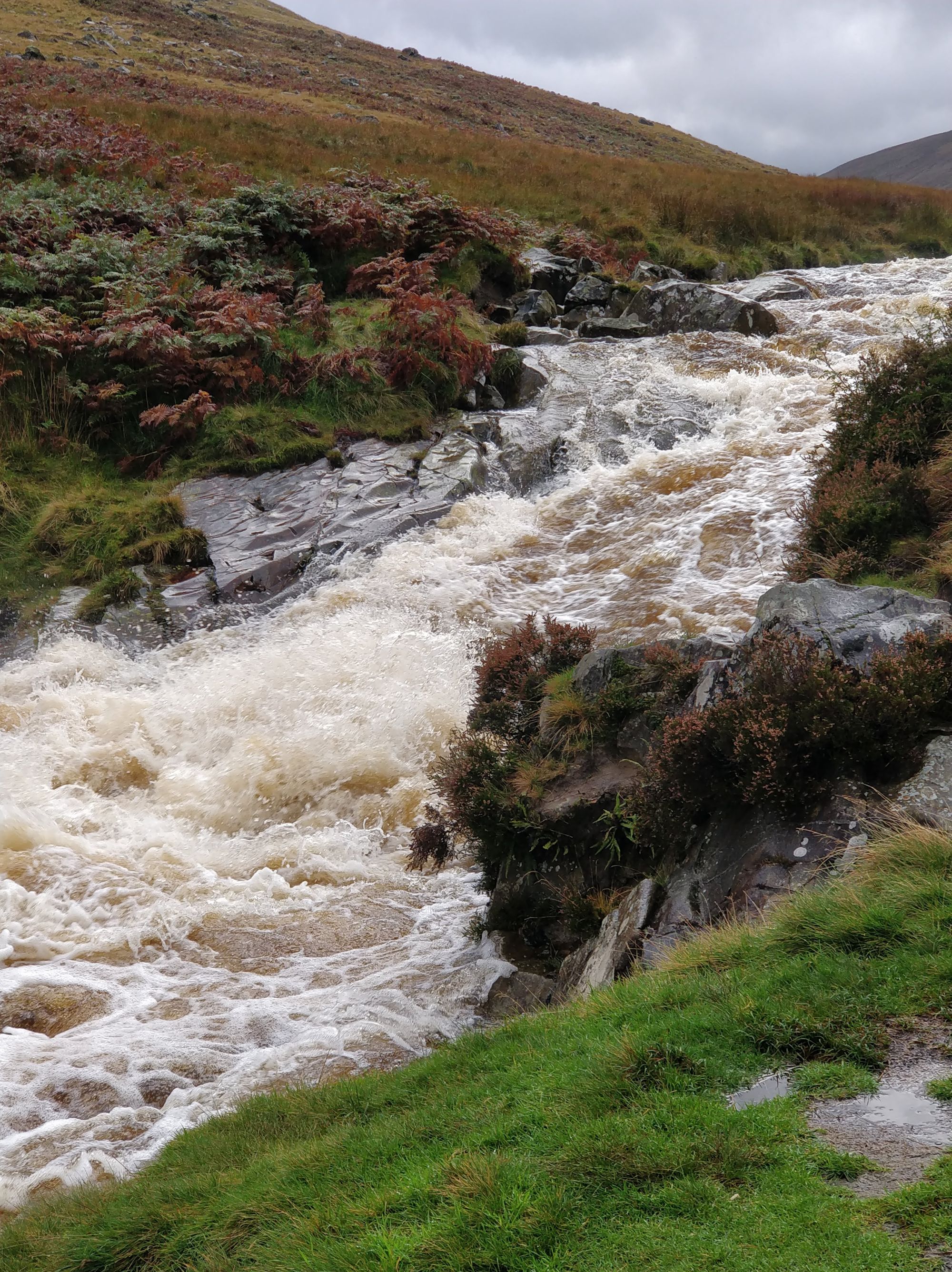 The weather held for the show and well into the evening however Sunday was a different story. I packed up in the rain then headed off towards Keswick via Whinlatter. There was water everywhere and the streams and waterfalls in spate were pretty spectacular. My plan was to meet up with the 2nd year Environmental Science Field trip to the area around Carrock Fell Mine. The road up the valley was playing at rivers and the rivers and streams were a horrible brown colour. After an hour or so the rain eased and the group was able to have lunch in the comparative dry before taking a tour of the field site.