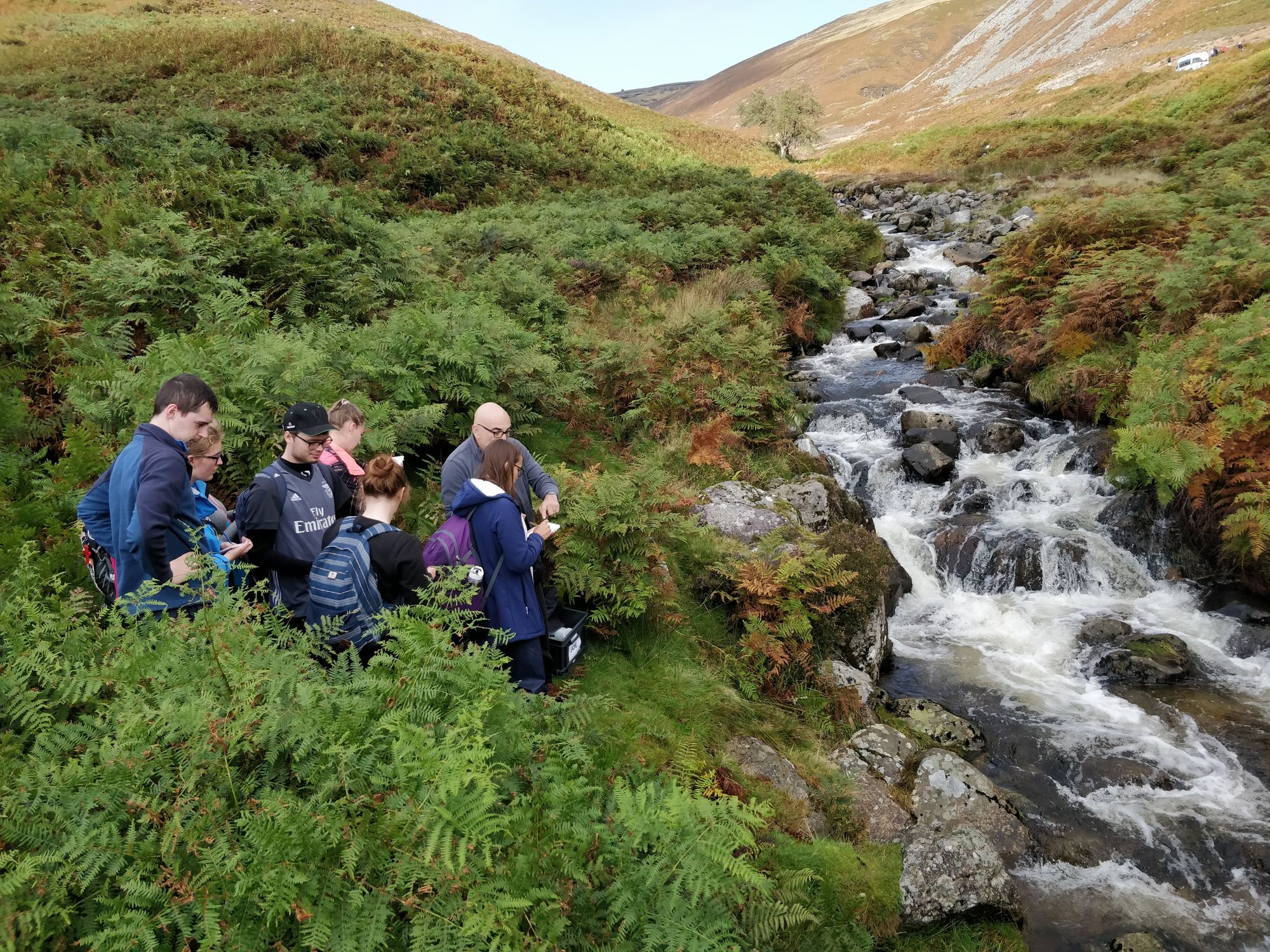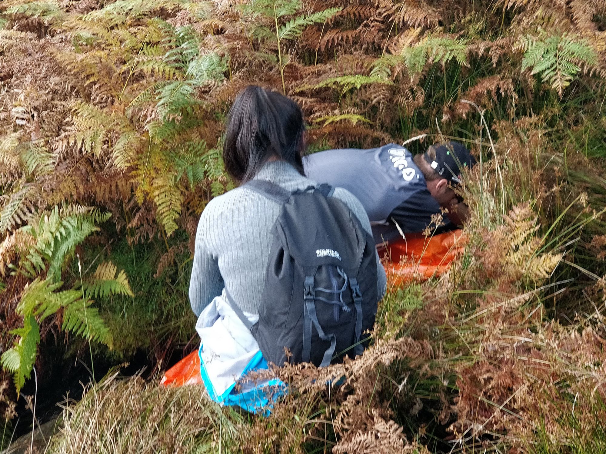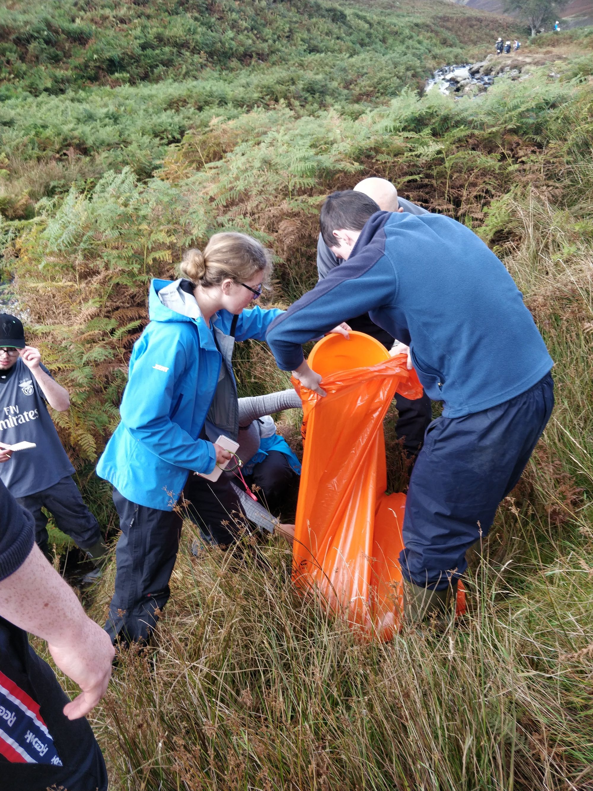 The students were learning methods of streamflow gauging - in this case dilution gauging using a pink dye (which needs permission from the EA to use). They also used direct volumetric methods using buckets and a large bivvy bag! Usually we do streamflow gauging in the Caldew however it was still very high and attempts to carry out this work were very quickly aborted when Ethan was in well over his knees within a couple of feet of the edge!