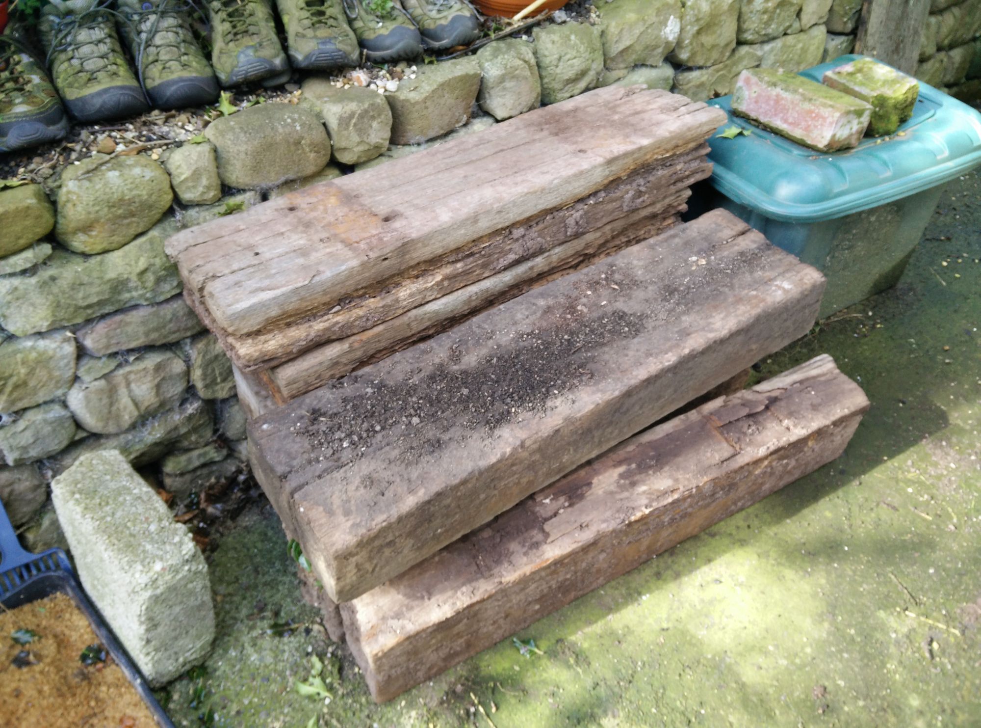 When I moved in in early 2012, the garden was very small (it still is!) consisting of a small lawn which was a pain to cut due to its slope and having walls all around it and two big hedges. The front garden seemed to consist mostly of prickly shrubs which very soon got out of hand. I was working on my PhD and going walking most weekends so the garden wasn't top priority. This gradually changed and I decided that the lawn had to go - it was primarily a mud patch in the winter. I'd had a shed base put in at one corner but the shed has never actually materialised. I got a load of sleepers from the Ravenglass and Eskdale Railway - 15 inch gauge ones which I can just about lift and started my garden renovations.
