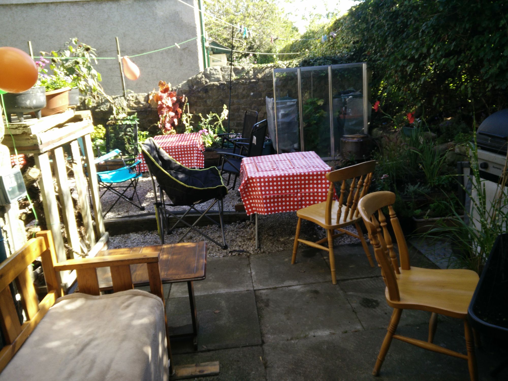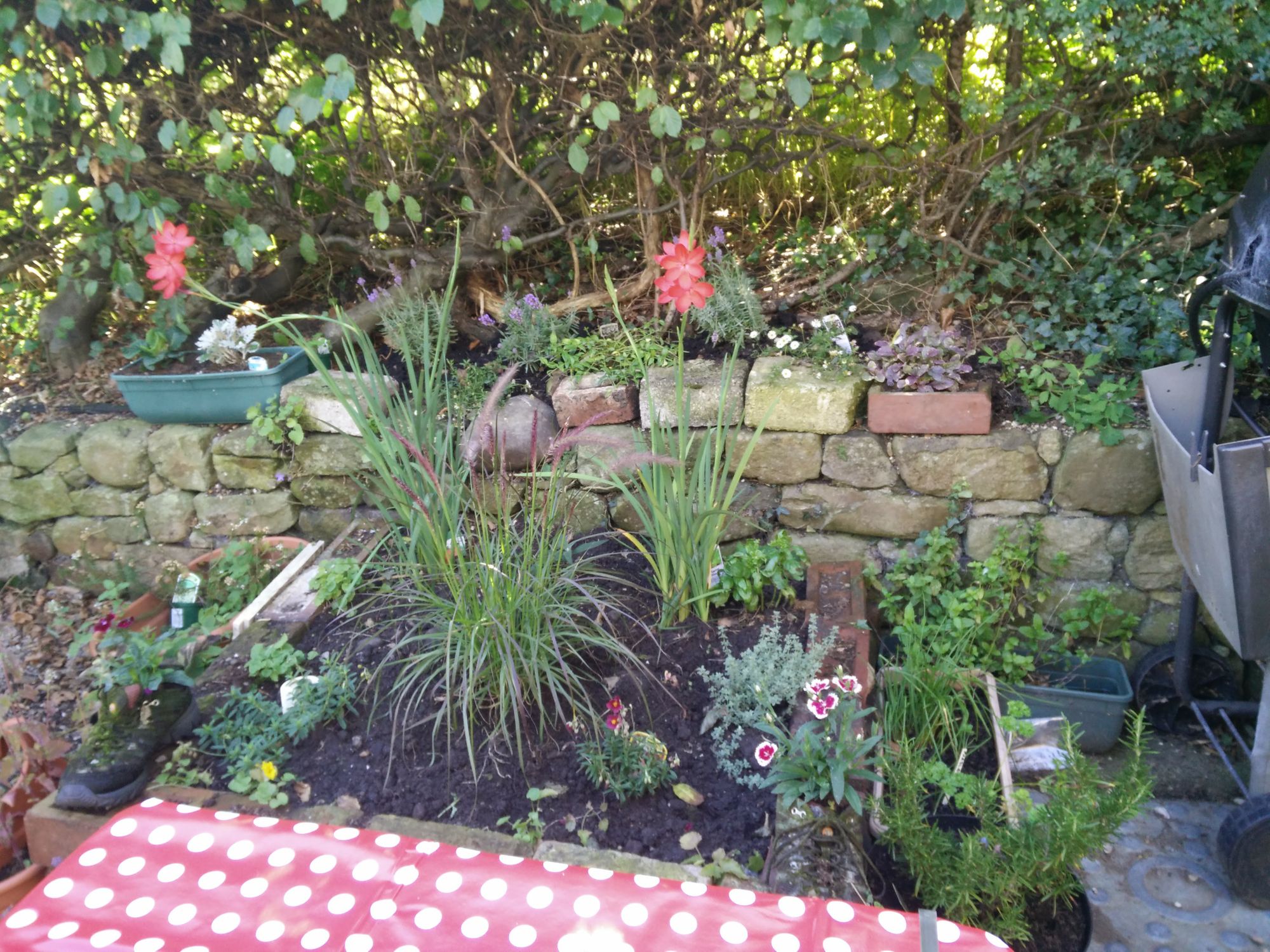 Eventually the lawn was cleared and the gravel spread. There were now borders at the edge but these needed work and so I started growing tubs and a few pots. By late 2016, the basic layout was complete just in time for my 60th birthday tea!